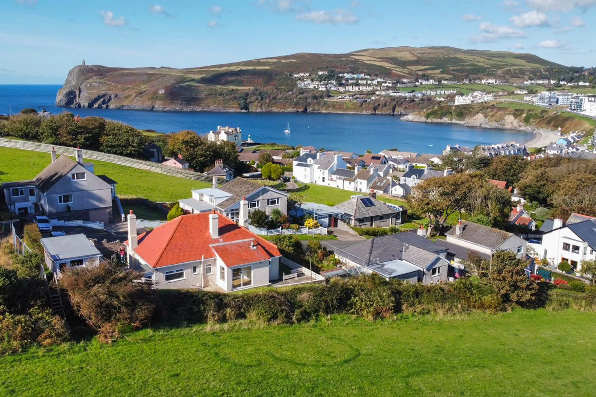 - Occupying a elevated postion with far reaching aspects over open fields, Gansey Bay and Bradda Head