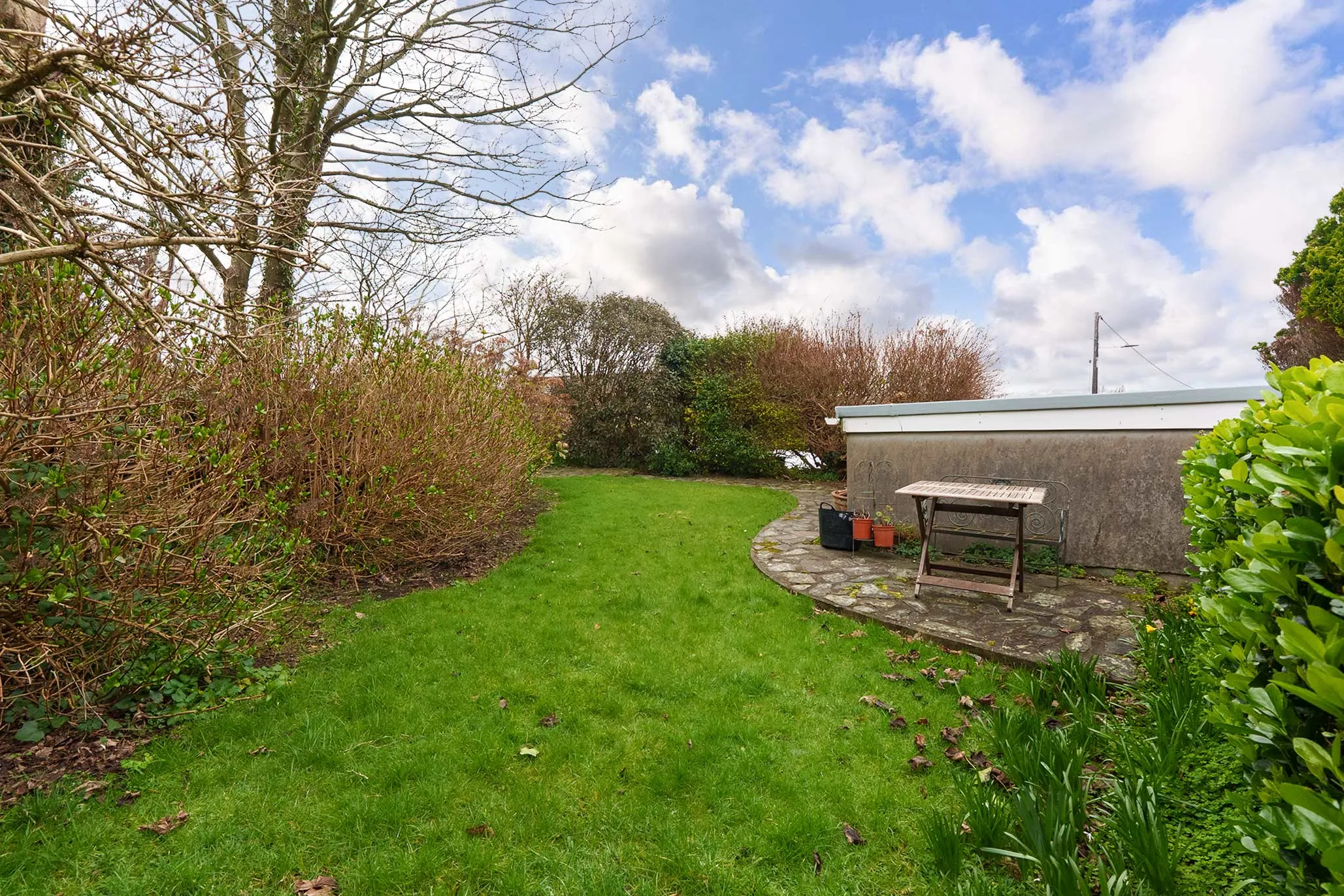 - Externally there is a lawned garden with established shrubs to the borders