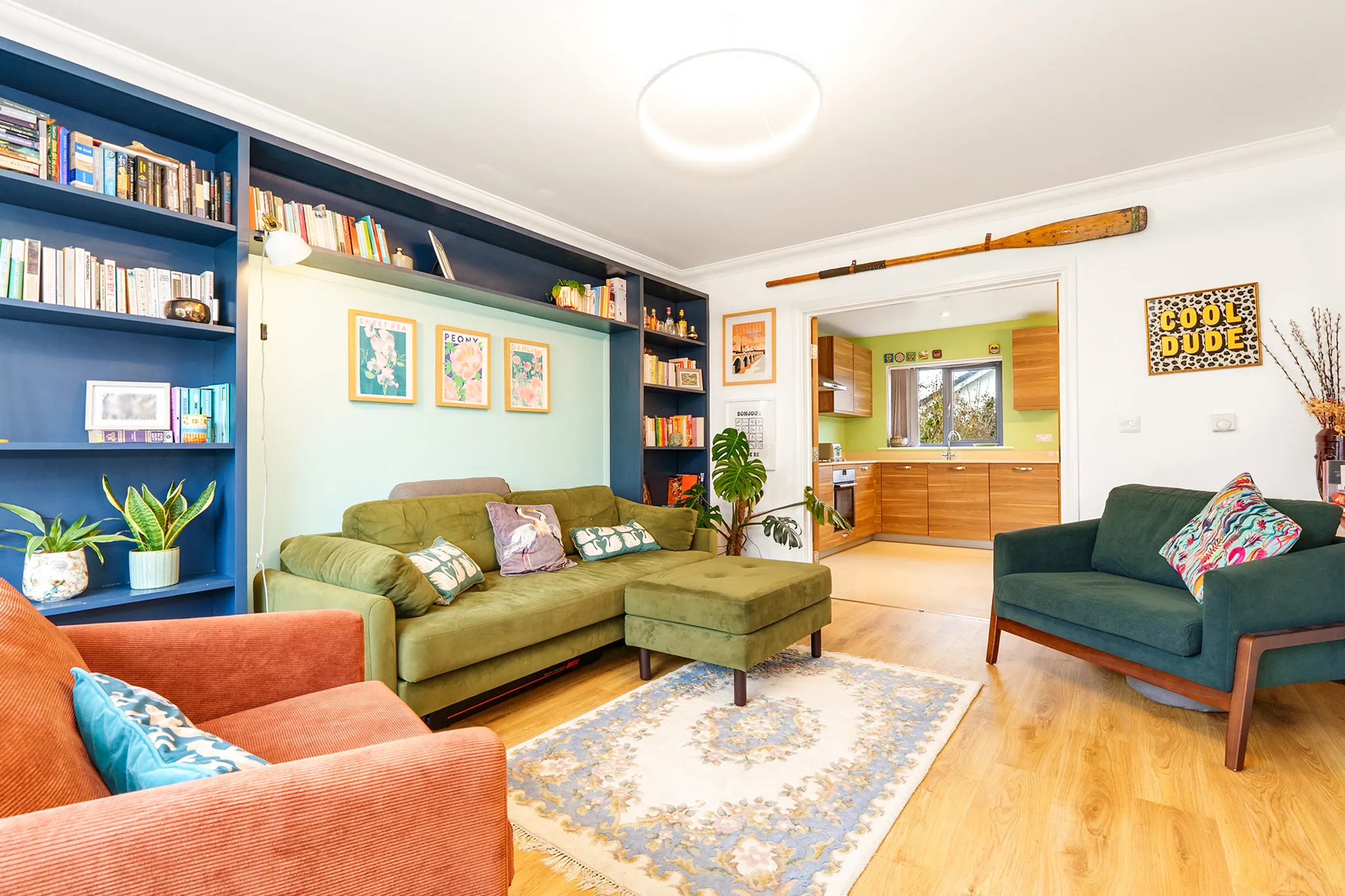 Inclusions All fitted floor coverings, blinds, bespoke built-in shelving in the living room, built in cabin bed in bedroom two, and a shed