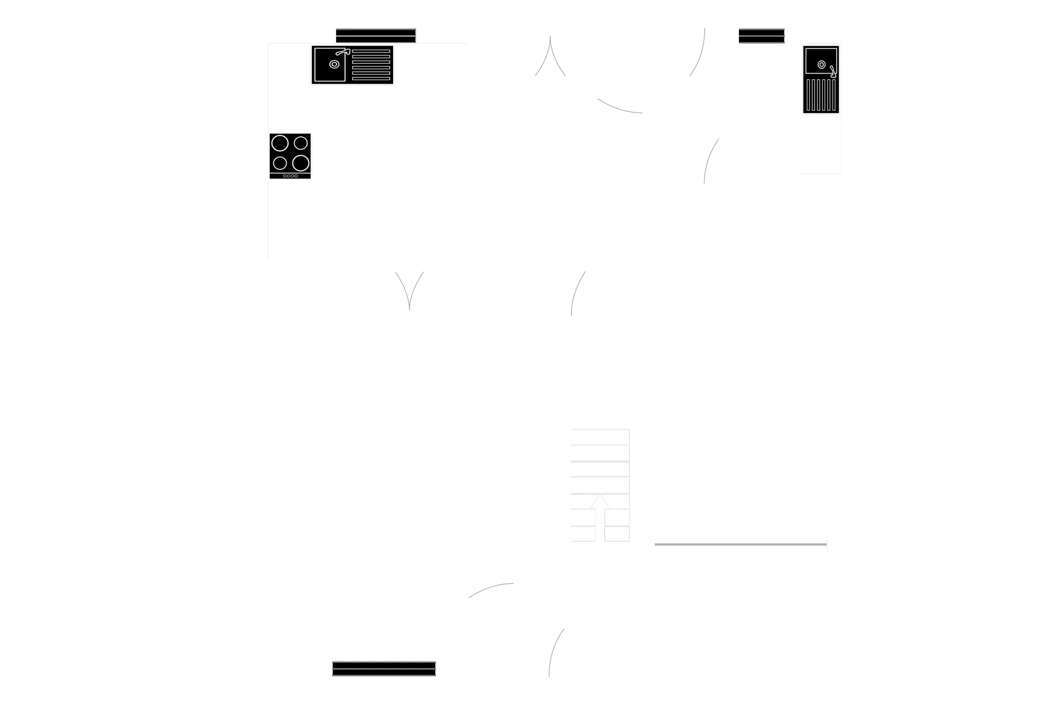 Appliances Electric oven, 4-ring hob with extractor hood, and a fridge/freezer