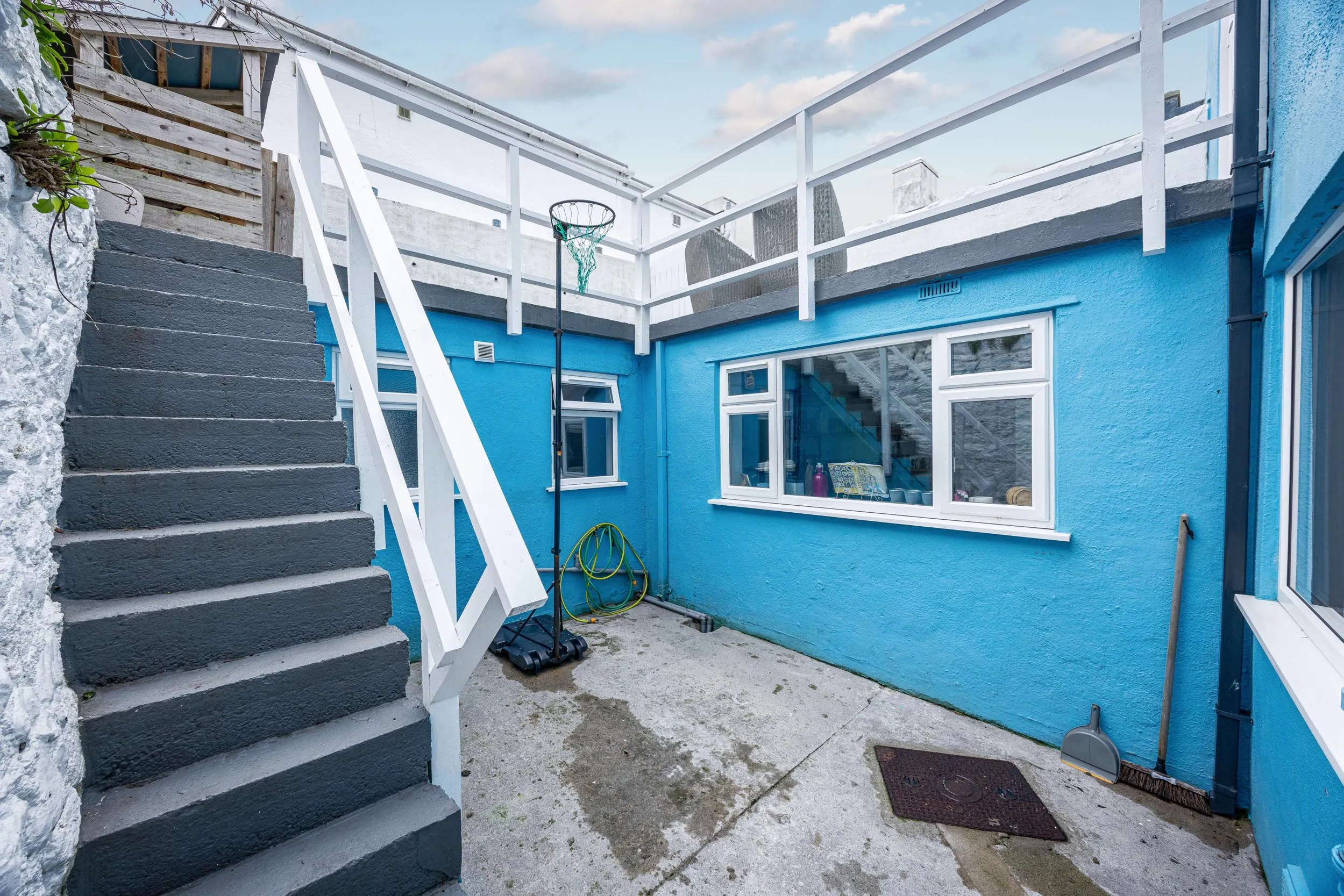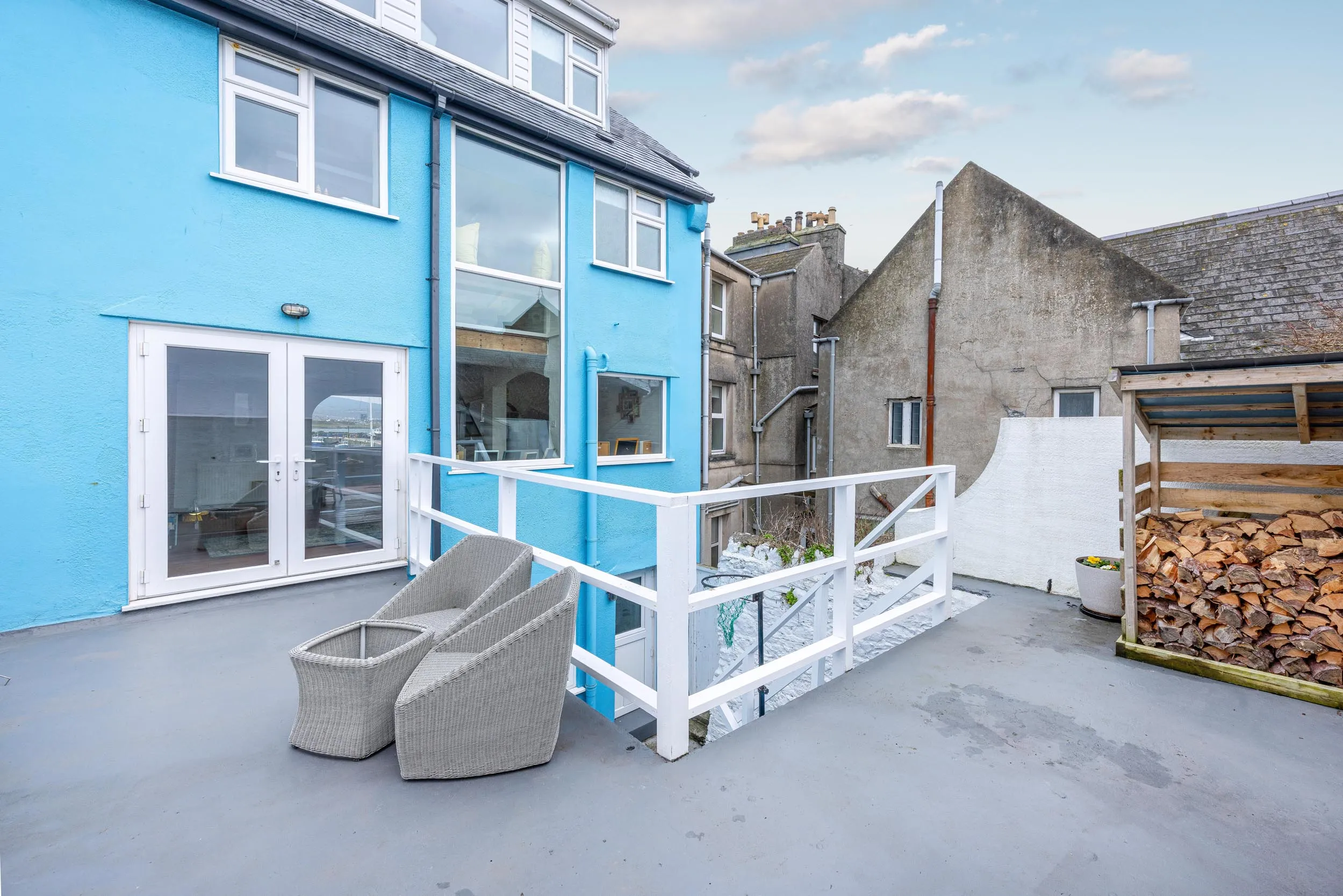 - Externally there is a yard with stair access to the south facing first floor sun terrace which can be accessed by French doors in the main living area – ideal for entertaining