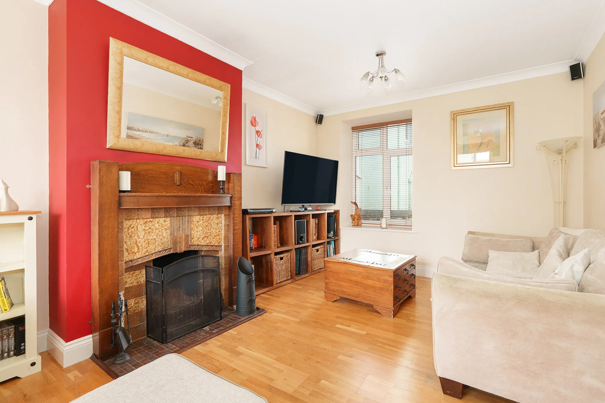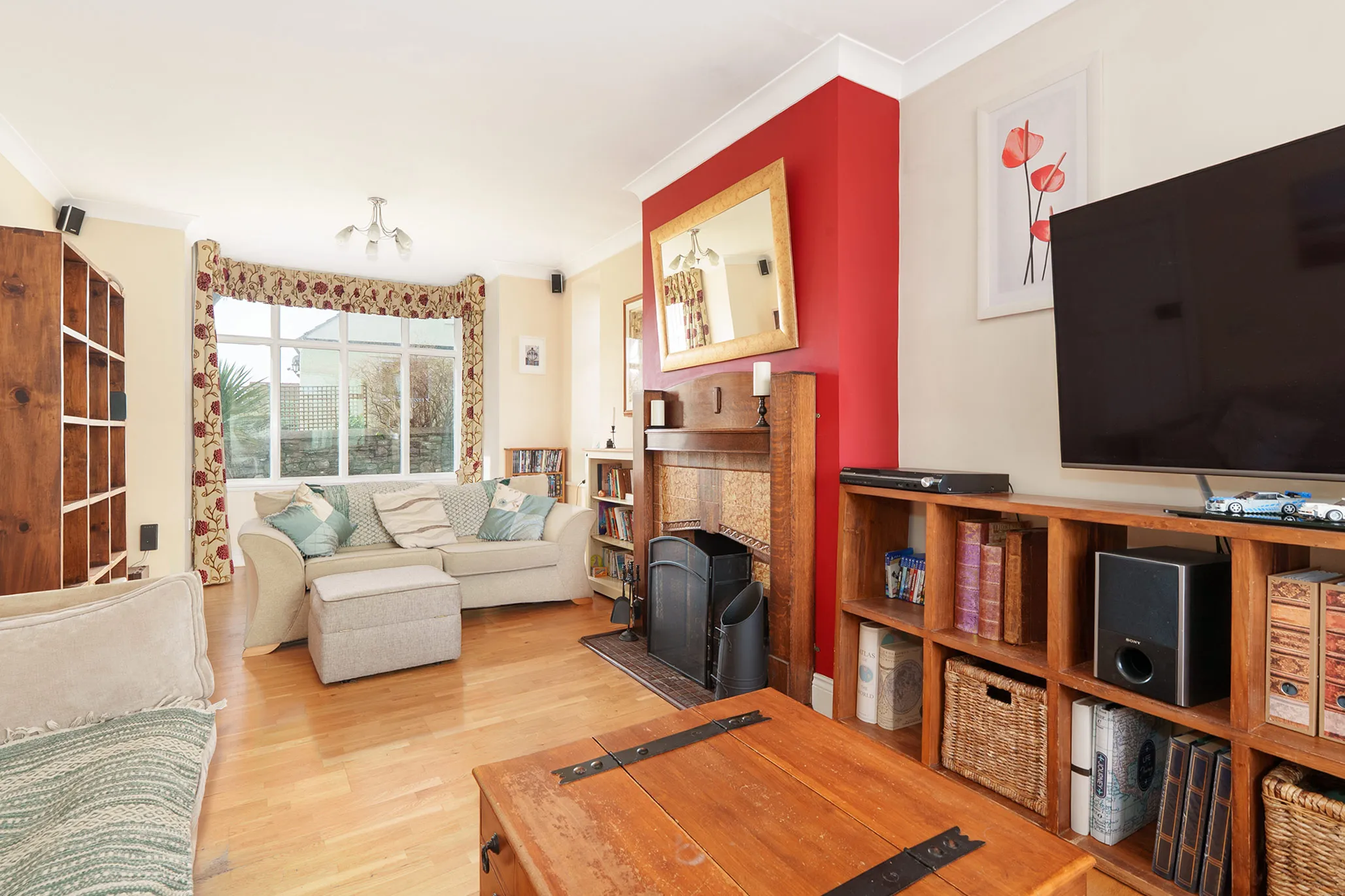 - Large dual aspect living room with feature fireplace and south facing square bay window to the front aspect