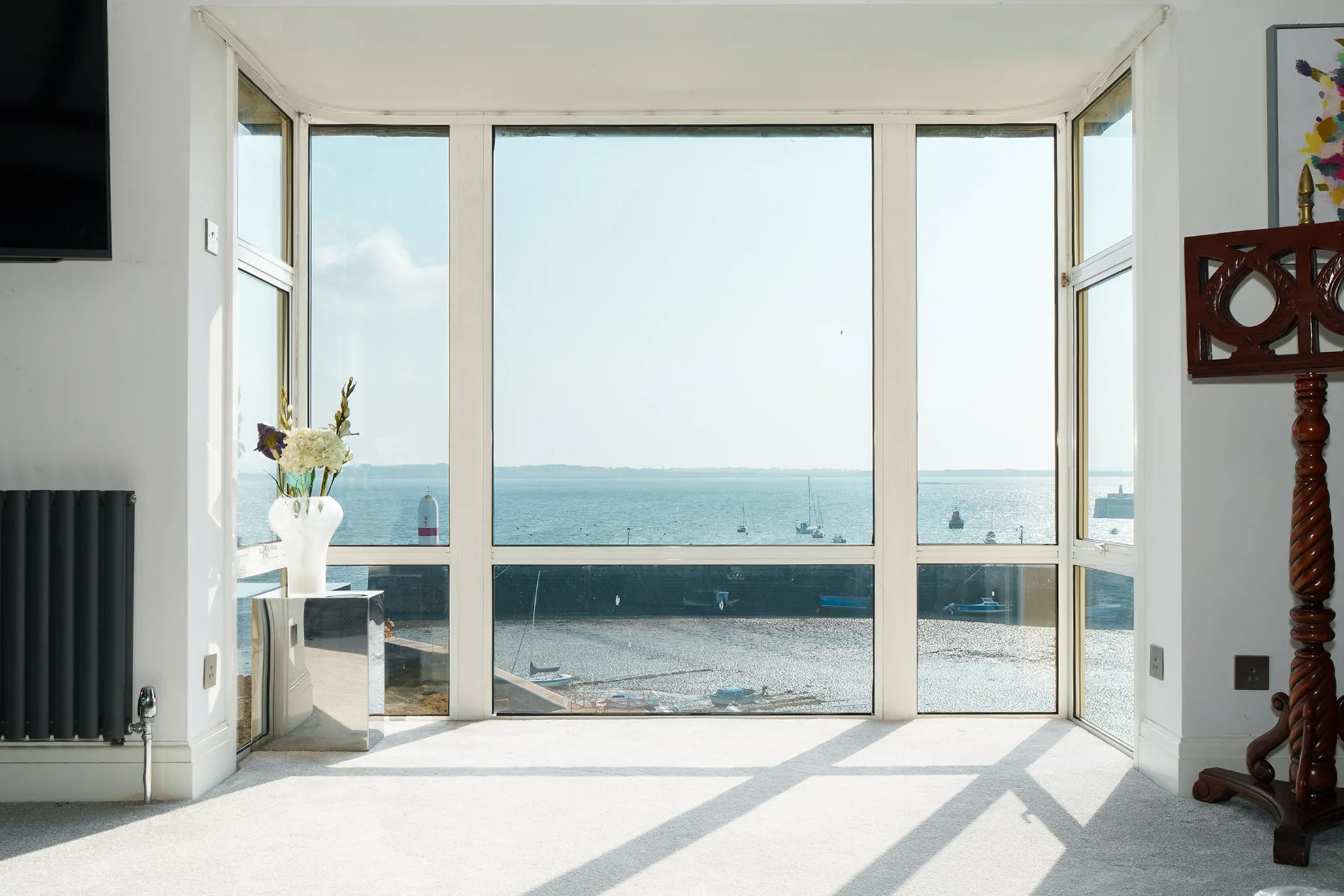 Externally, the sun/roof terrace offers an exceptional private outdoor space with panoramic sea and harbour views, perfect for entertaining or simply relaxing.