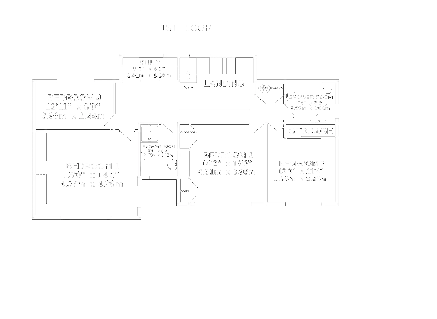- 4 Good sized bedrooms, study, 2 shower rooms and a ground floor cloakroom (WC)