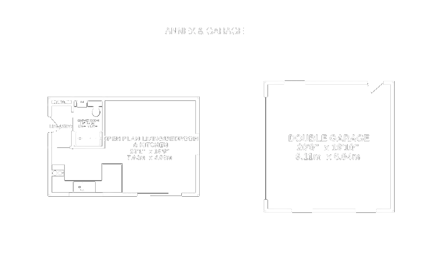 - Detached annex situated some distance from the principle property with studio style open plan living, bedroom and kitchen with separate shower room
