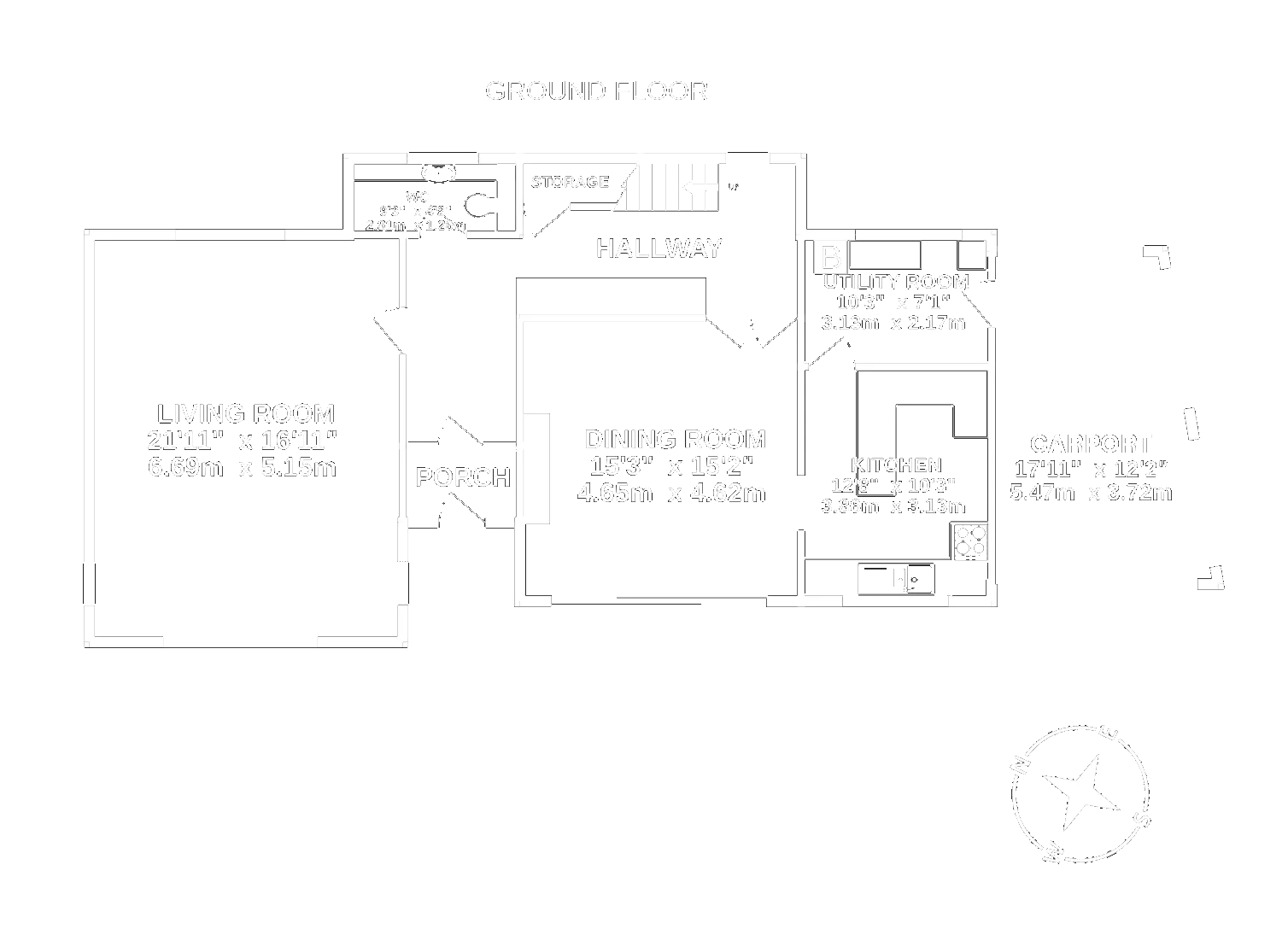 - Dining room has opening through to the kitchen with utility room off