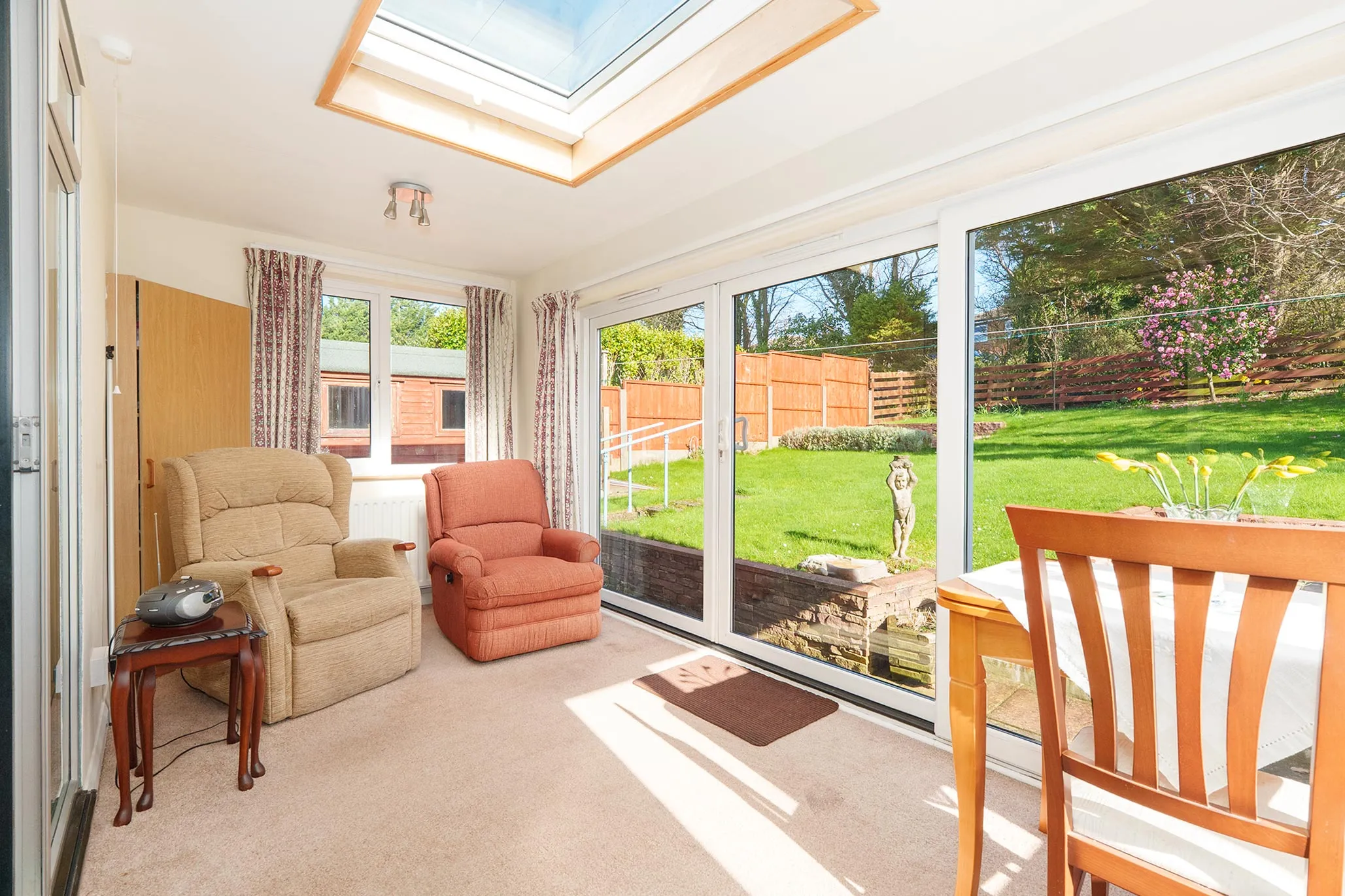 - Living room with sun room extension enjoying a roof light and access to the rear garden