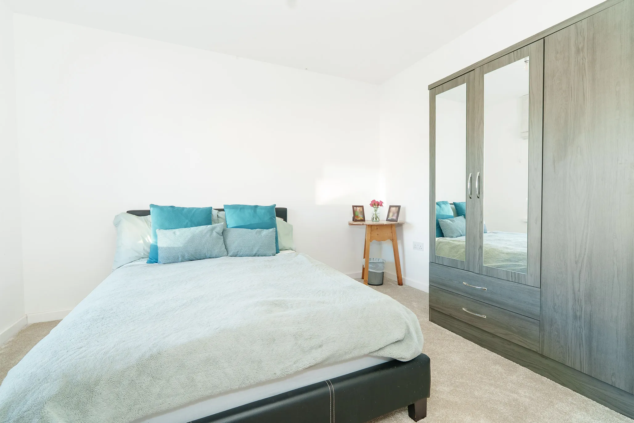 The beautifully presented accommodation includes a lovely living room featuring a bespoke media wall and a contemporary inset electric fire, creating a warm and inviting focal point.