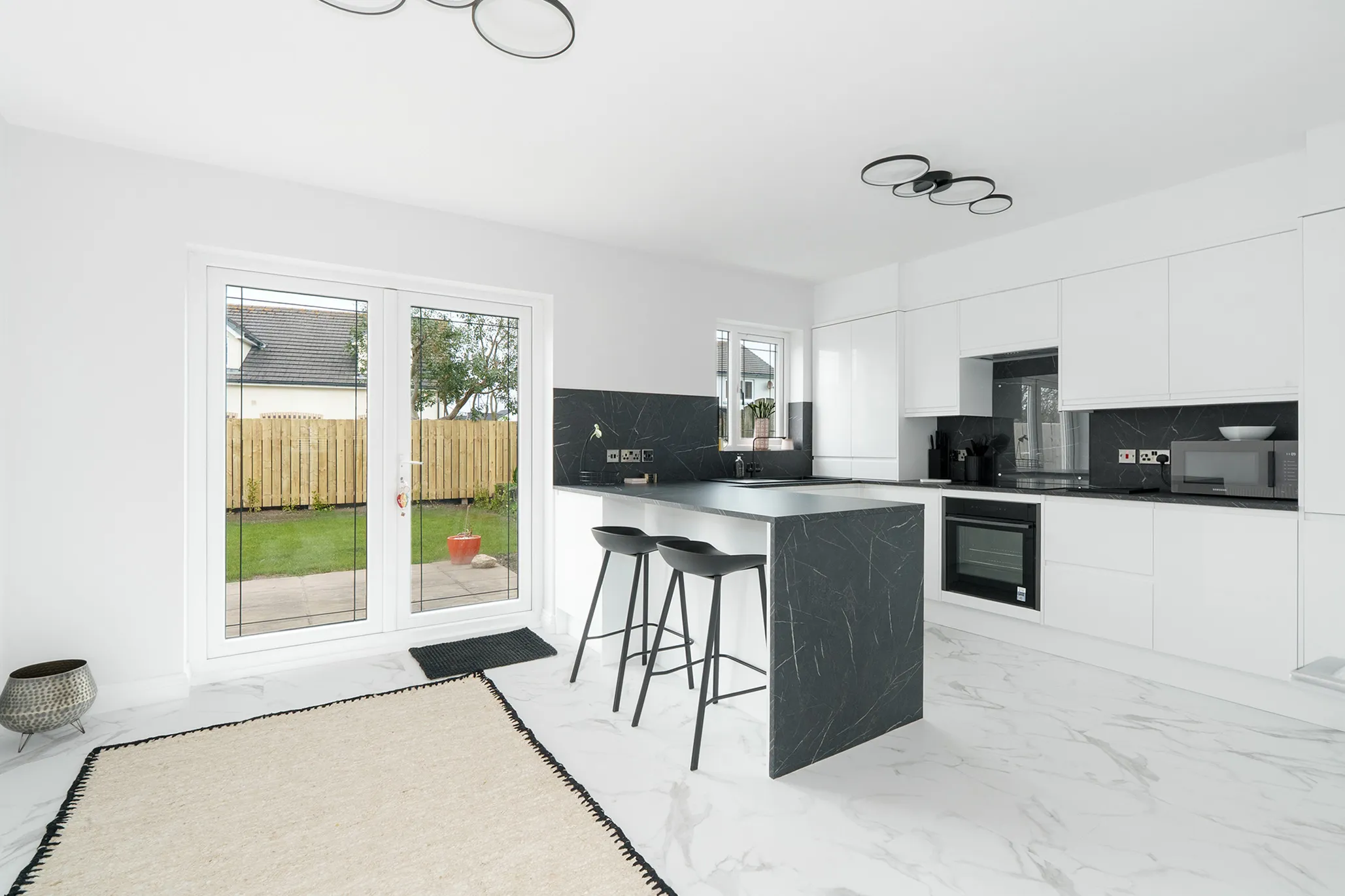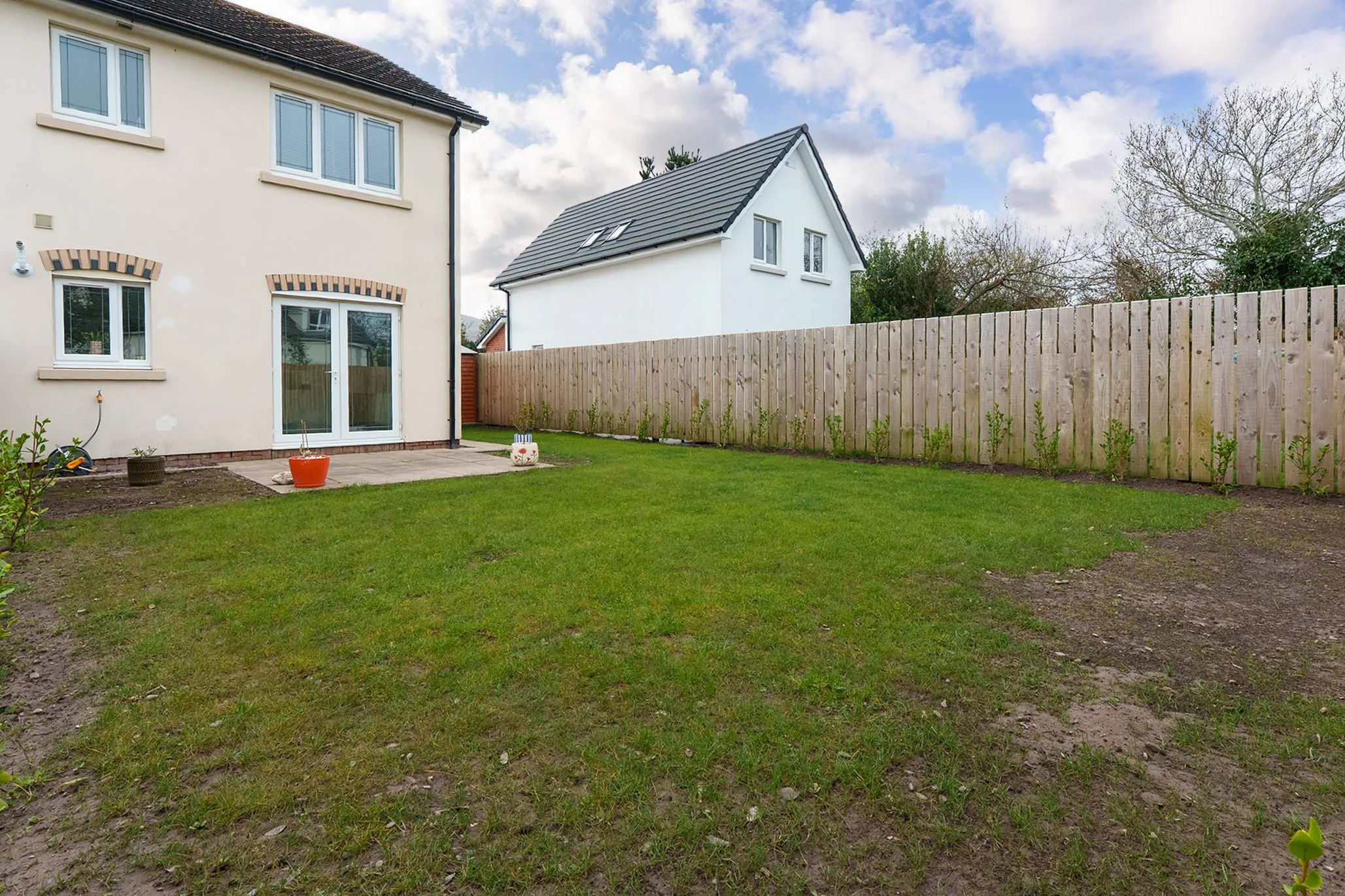 The accommodation is light, airy and well-proportioned, beginning with a welcoming entrance hallway with a convenient cloakroom (WC). There is a lovely living room, while the heart of the home is the stunning dining kitchen, complete with a breakfast bar and French doors opening onto the external paved patio—creating the perfect space for modern living, entertaining and alfresco dining.