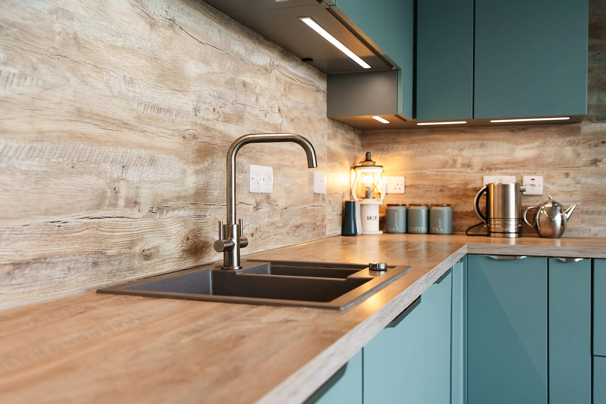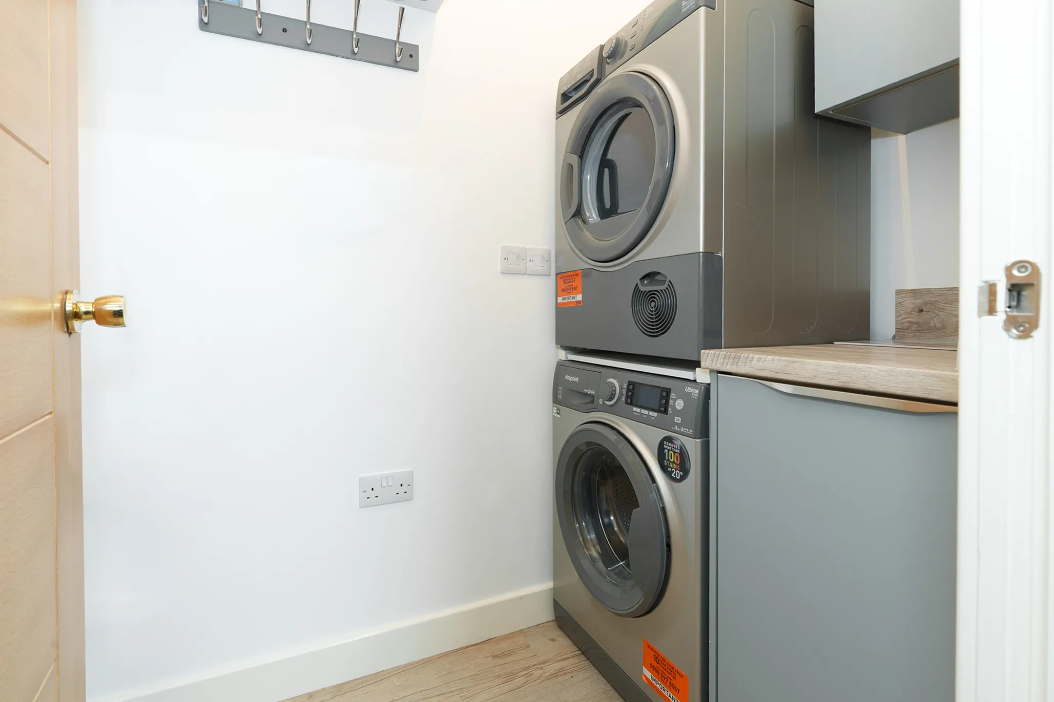 Appliances Oven and 4 ring hob, wine cooler, fridge, dishwasher, washing machine