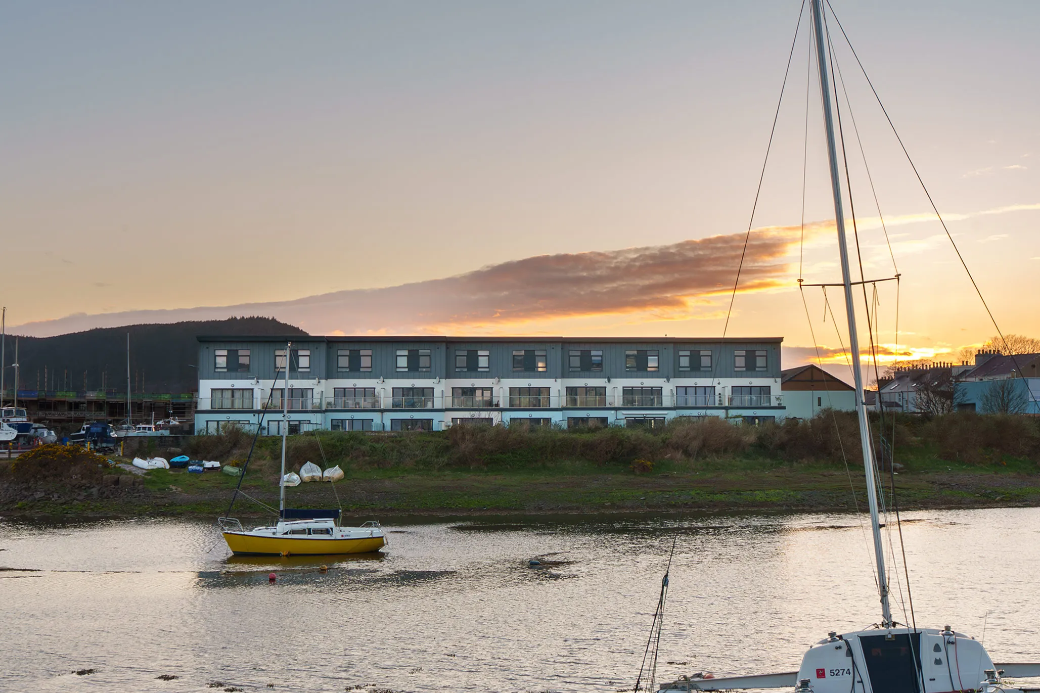 This contemporary harbour-side townhouse offers spacious and beautifully appointed accommodation arranged over three levels, enjoying stunning views across the harbour, the Sulby River and out to sea.