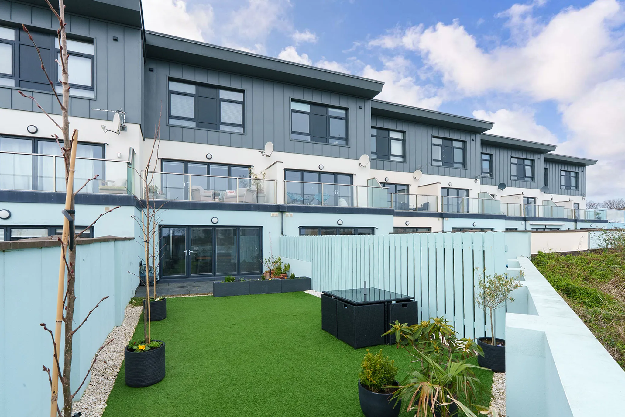 Externally, the property benefits from a block-paved driveway providing access to the integral garage. The rear garden is designed for low maintenance and year-round enjoyment, featuring a landscaped courtyard-style layout with patio and artificial grass.