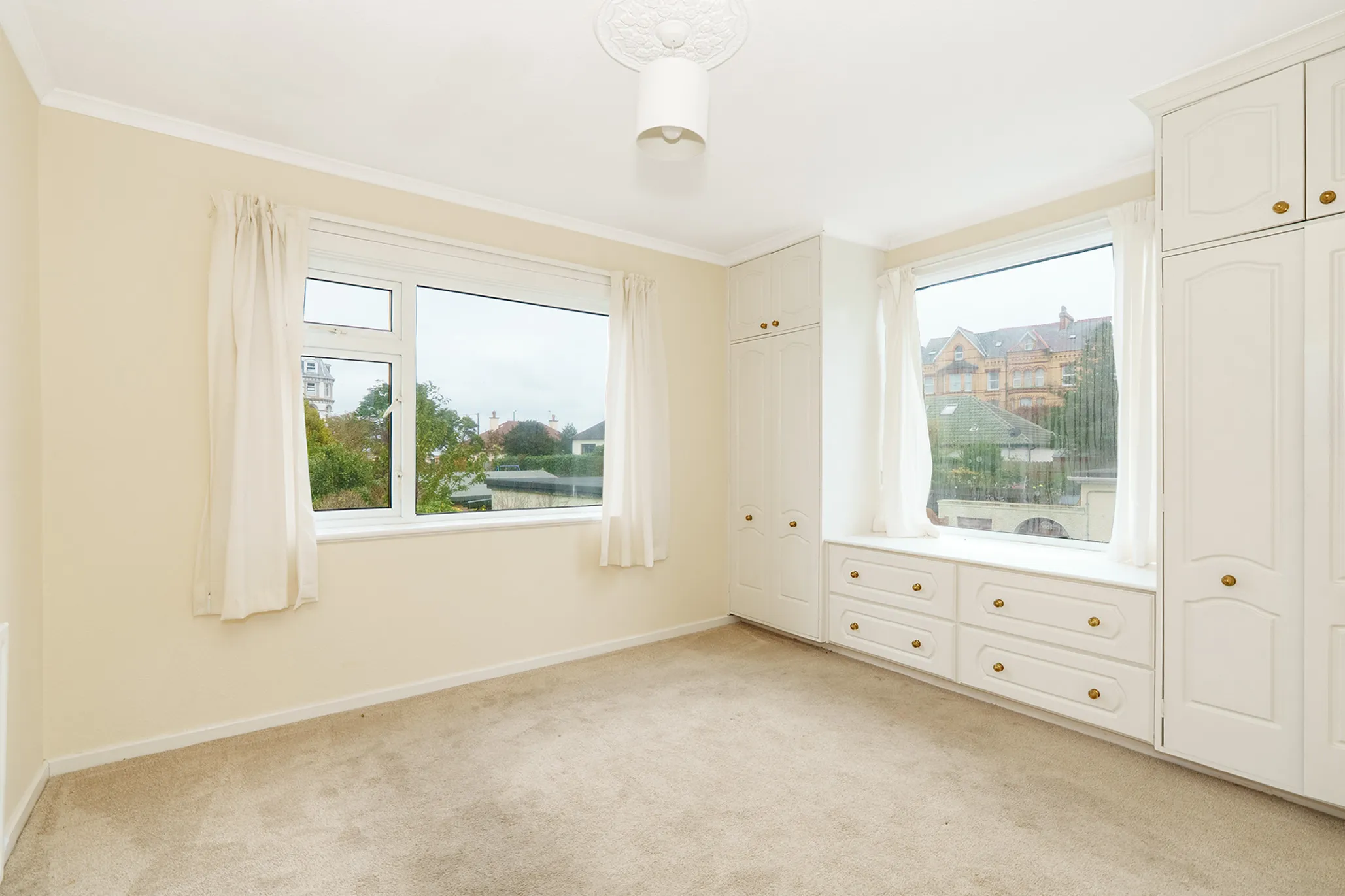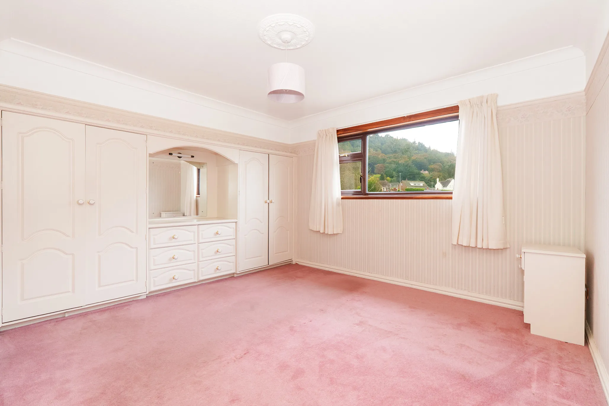 The traditional kitchen overlooks the rear garden, which is laid to lawn and includes a patio area and a charming summer house — ideal for outdoor dining or relaxing in the warmer months. There are three well-proportioned double bedrooms which enjoy picturesque views towards Lhergy Frissell and the iconic Albert Tower also offering ample space and flexibility for a growing family or visiting guests.