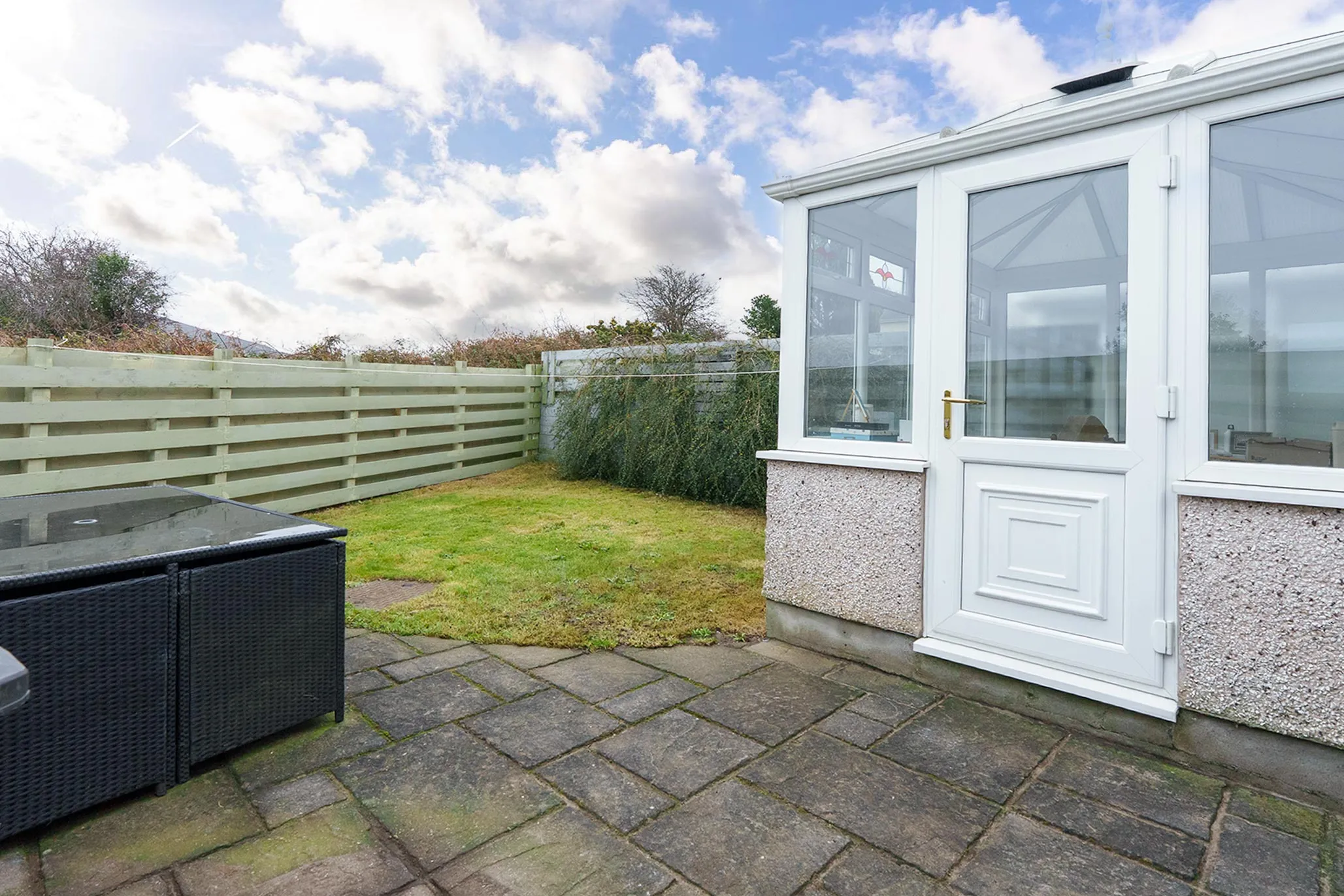 - Lawned rear garden with paved seating area